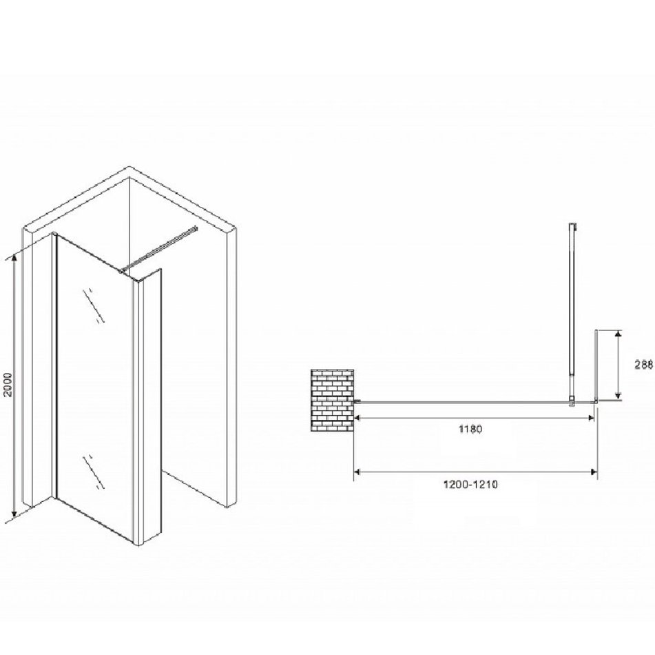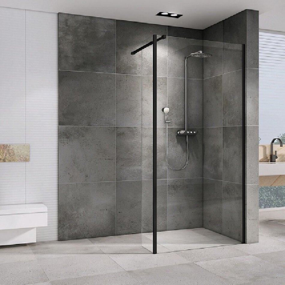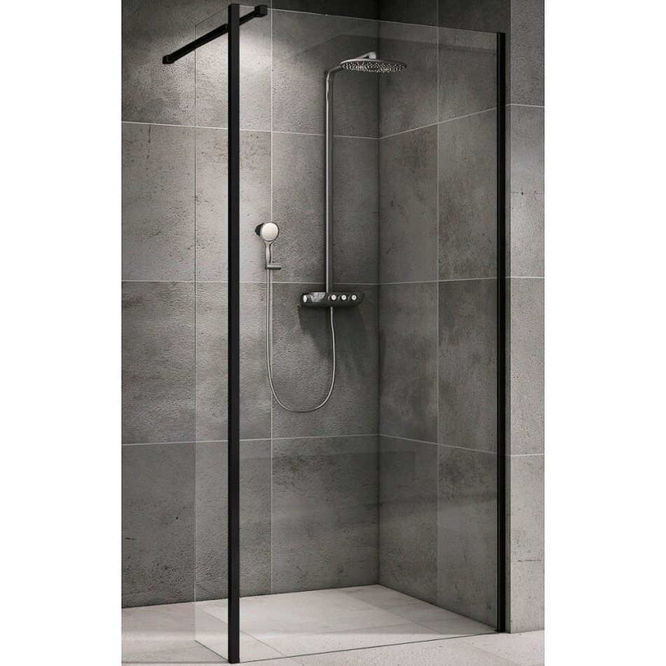 Душевая стенка Abber Immer Offen со свободным входом, 120 см, стекло прозрачное, профиль черный, AG66120B