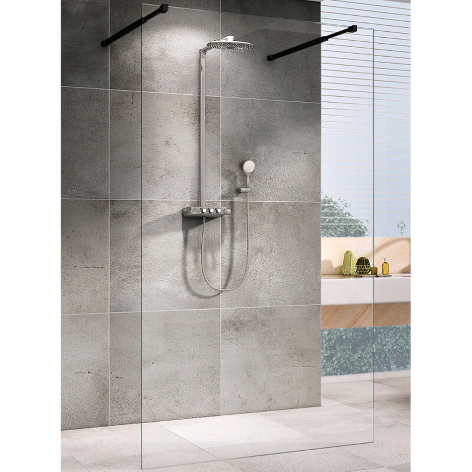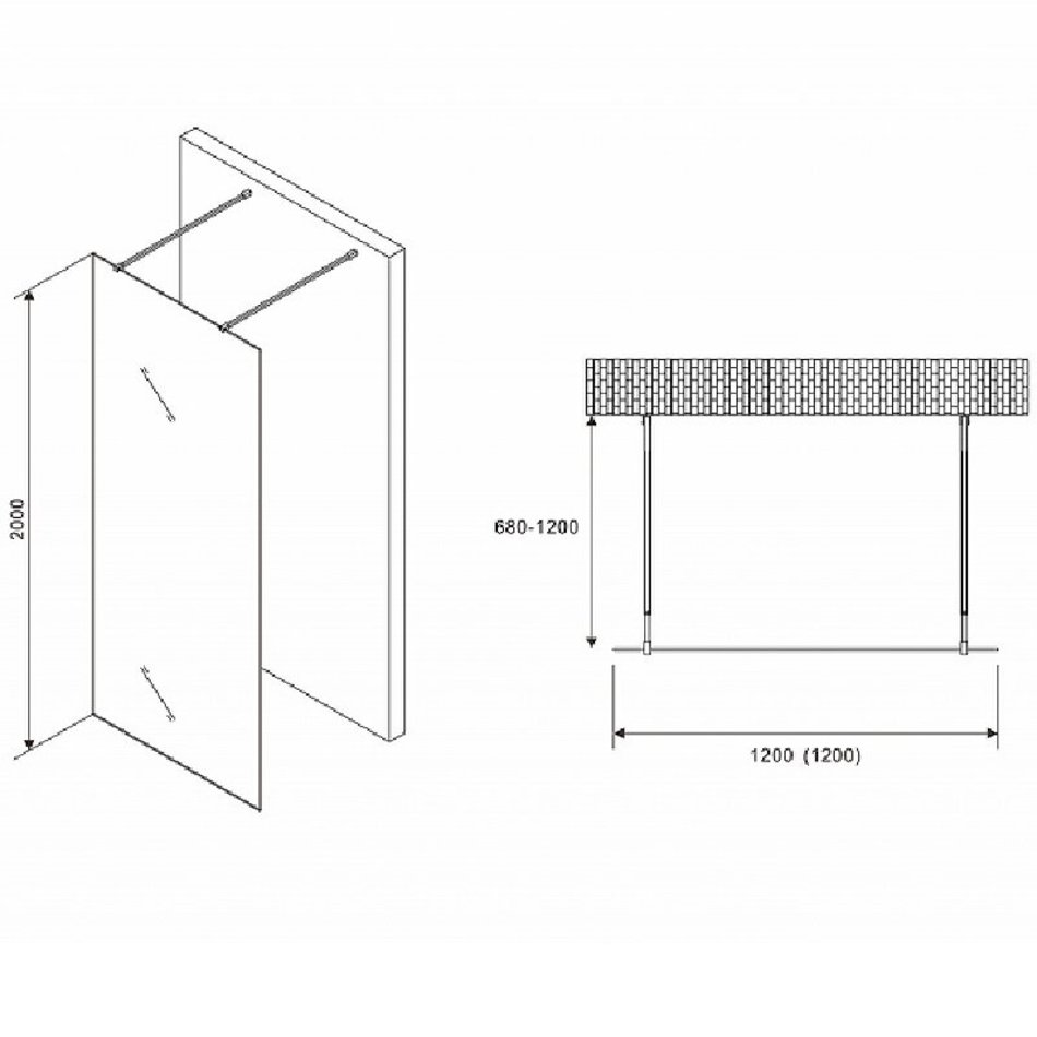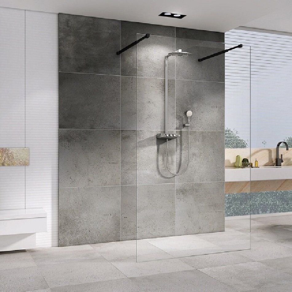 Душевая стенка Abber Immer Offen со свободным входом, 120 см, стекло прозрачное, профиль черный, AG68120B8