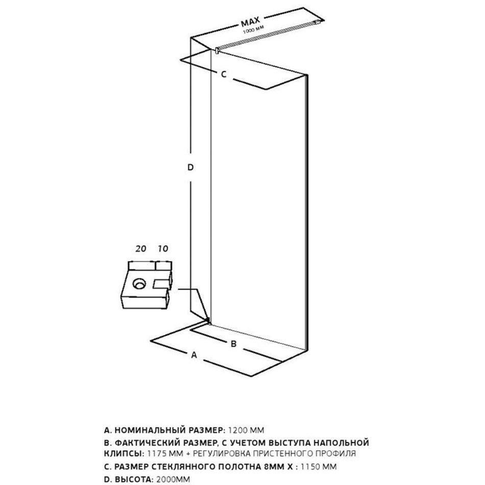 Душевая стенка Allen Brau Infinity 1, Walk In, 3.21023.60, 120 см, стекло прозрачное, профиль медь браш