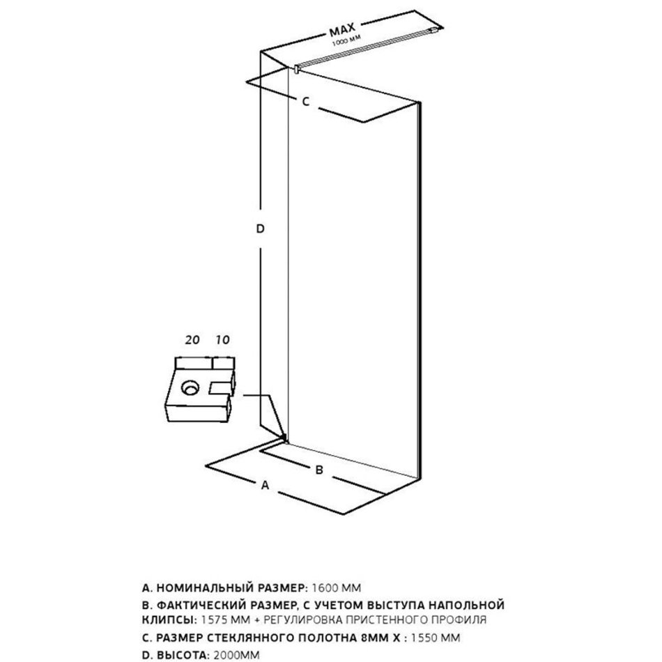 Душевая стенка Allen Brau Infinity 1, Walk In, 3.21033.BBA, 160 см, стекло прозрачное, профиль черный браш