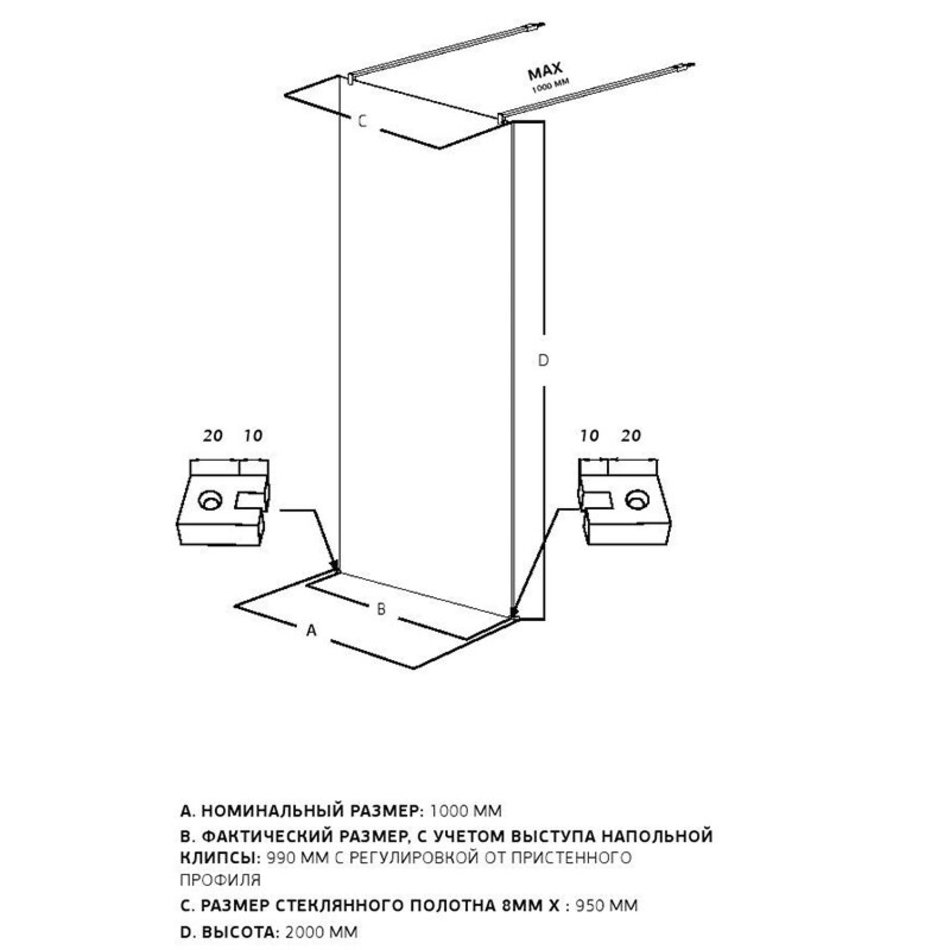 Душевая стенка Allen Brau Infinity 2, Walk In, 3.21040.BBA.T, 100 см, стекло тонированное, профиль черный браш