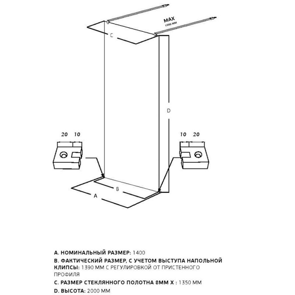 Душевая стенка Allen Brau Infinity 2, Walk In, 3.21050.BA.T, 140 см, стекло тонированное, профиль серебро браш