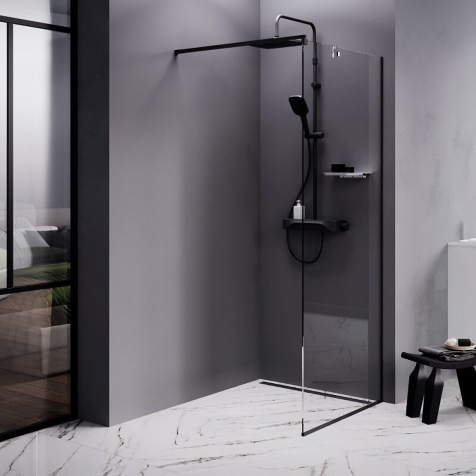 Душевая стенка Am.Pm Func W84WI-90-F1-BTE, 90 см, со свободным входом, стекло прозрачное, профиль черный
