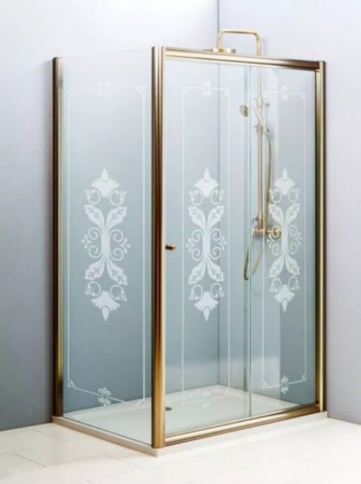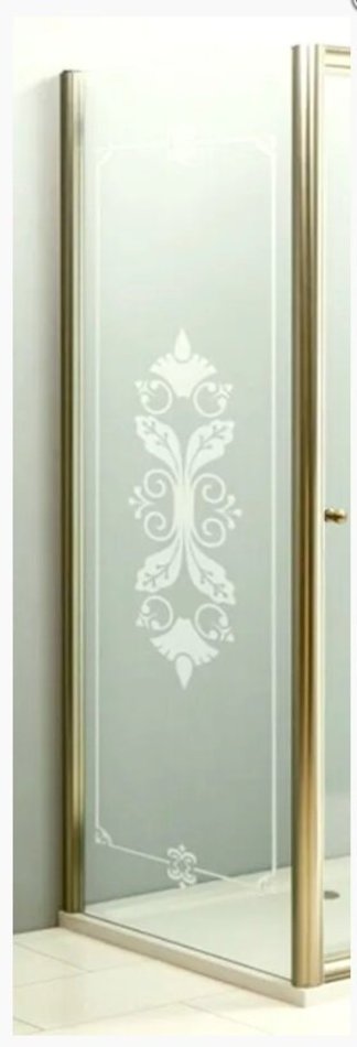 Душевая стенка Cezares Giubileo-FIX-90-SCORREVOLE-CP-G, 90 см, стекло прозрачное с рисунком, профиль золото