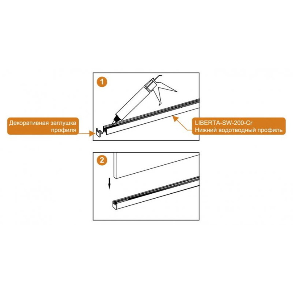 ОБРАТИТЕ ВНИМАНИЕ! При установке душевой перегородки непосредственно на пол использование нижнего водоотводного профиля необходимо, т.к. установка открытого торца стекла на плитку настоятельно не рекомендуется и ведёт к прекращению гарантийных обязательств.