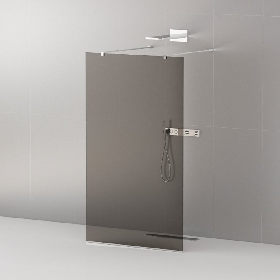 Душевая стенка Cezares Liberta 110 см со свободным входом, стекло графит, профиль хром, LIBERTA-L-2-110-120-GR-Cr