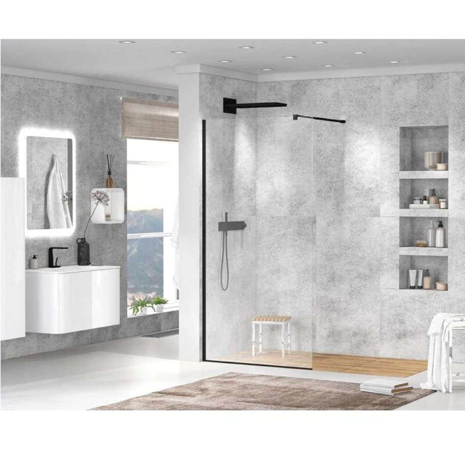 - Душевая перегородка с односторонним входом, стекло прозрачное, профиль чёрный, 1100x1200x1950 мм