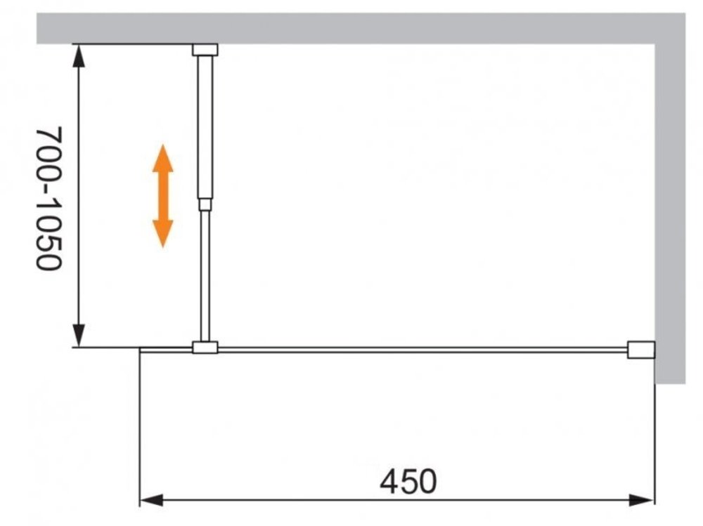 Душевая стенка Cezares Liberta 45 см, со свободным входом, стекло прозрачное, профиль хром, Liberta-L-1-45-C-Cr