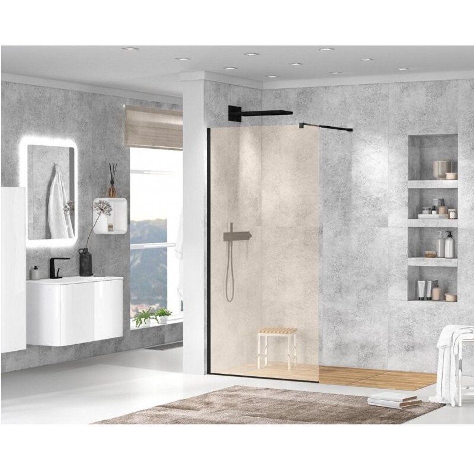 - Душевая перегородка с односторонним входом, стекло бронза, профиль чёрный, 800x1200x1950 мм