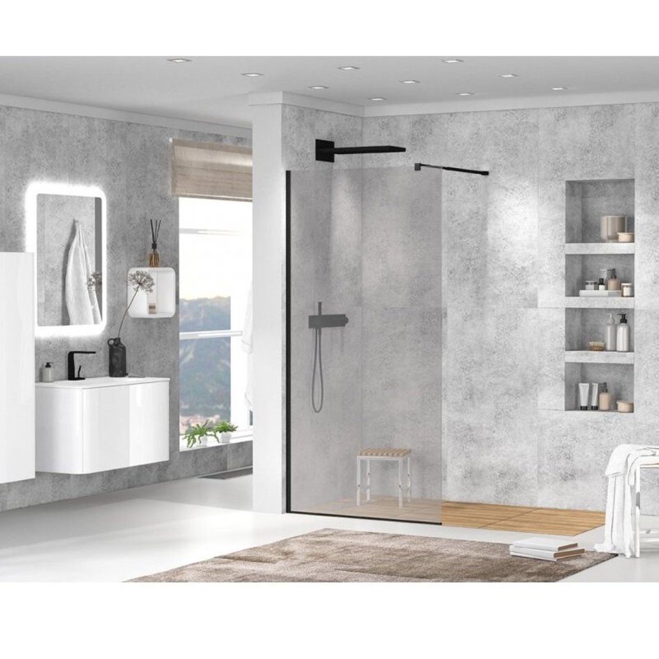 - Душевая перегородка с односторонним входом, стекло прозрачное, профиль чёрный, 850x1200x1950 мм