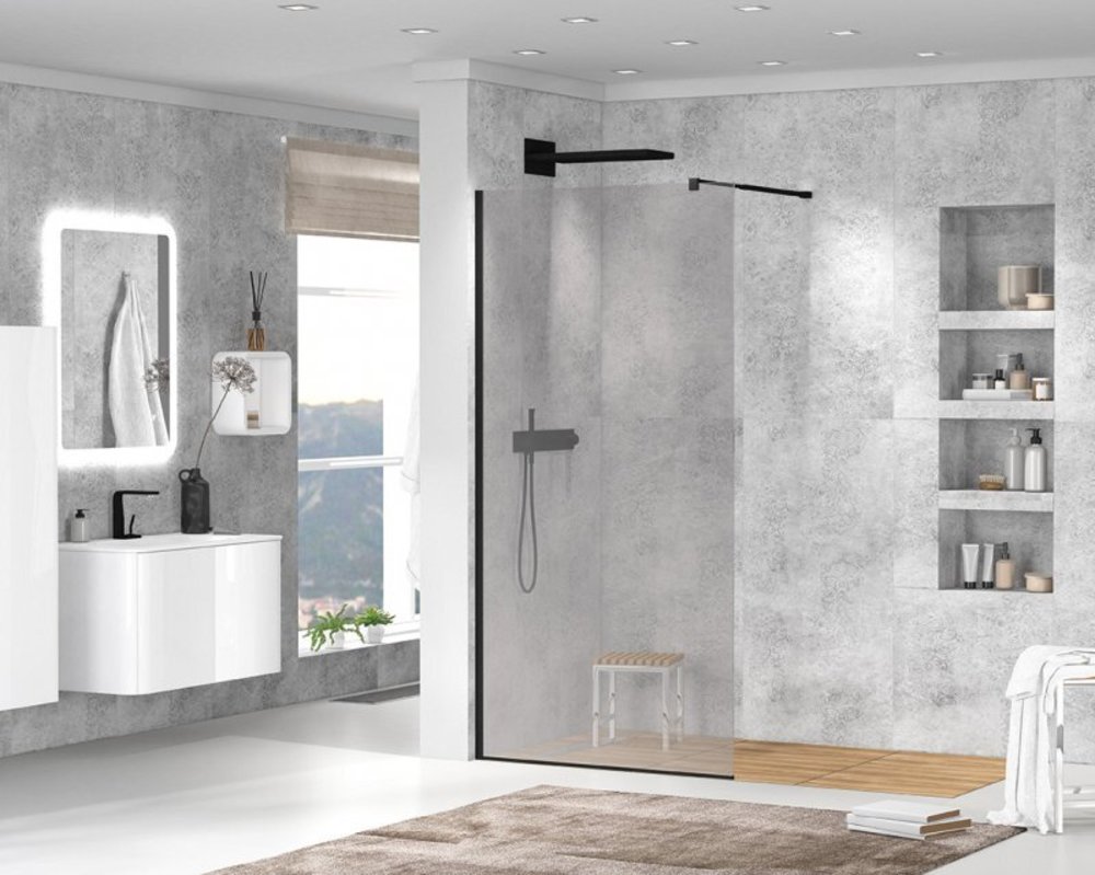 Душевая стенка Cezares Liberta со свободным входом, 110 см, стекло графит, профиль черный, Liberta-L-1-110-GR-Nero