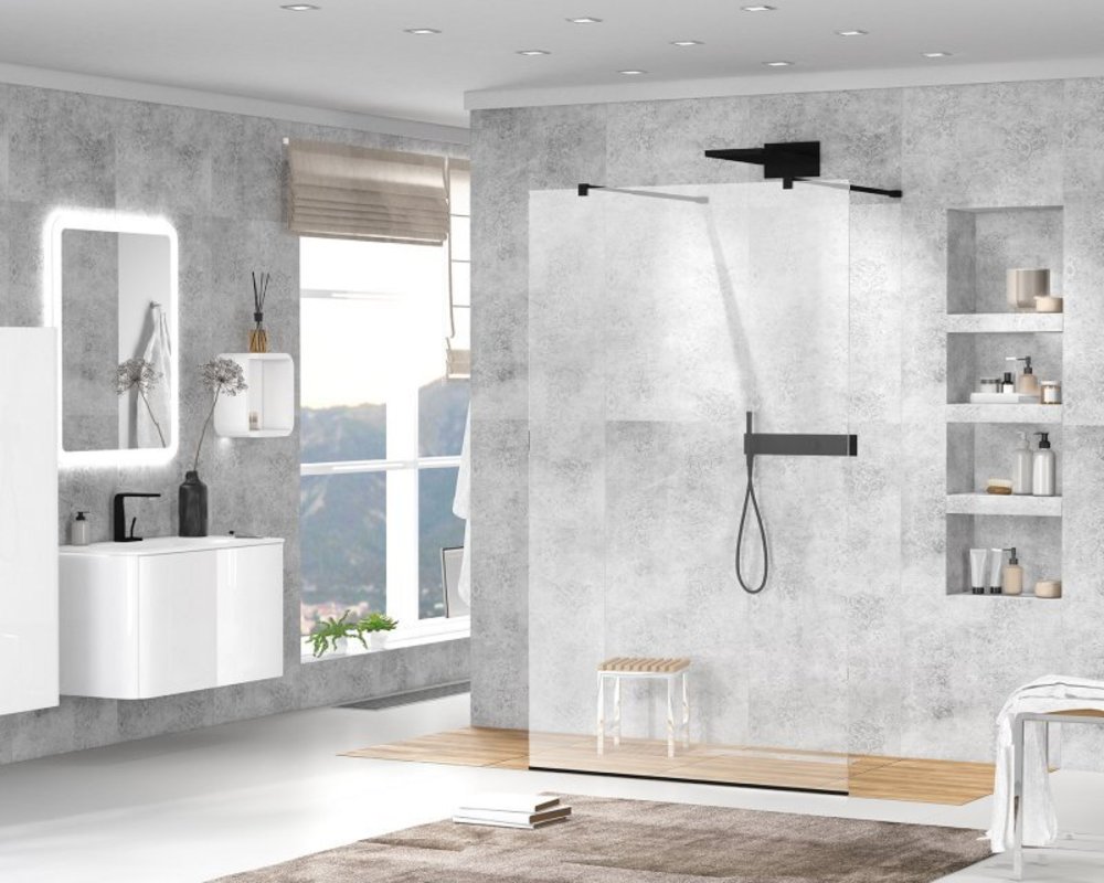 Душевая стенка Cezares Liberta со свободным входом, 110 см, стекло прозрачное, профиль черный, Liberta-L-2-110-C-Nero