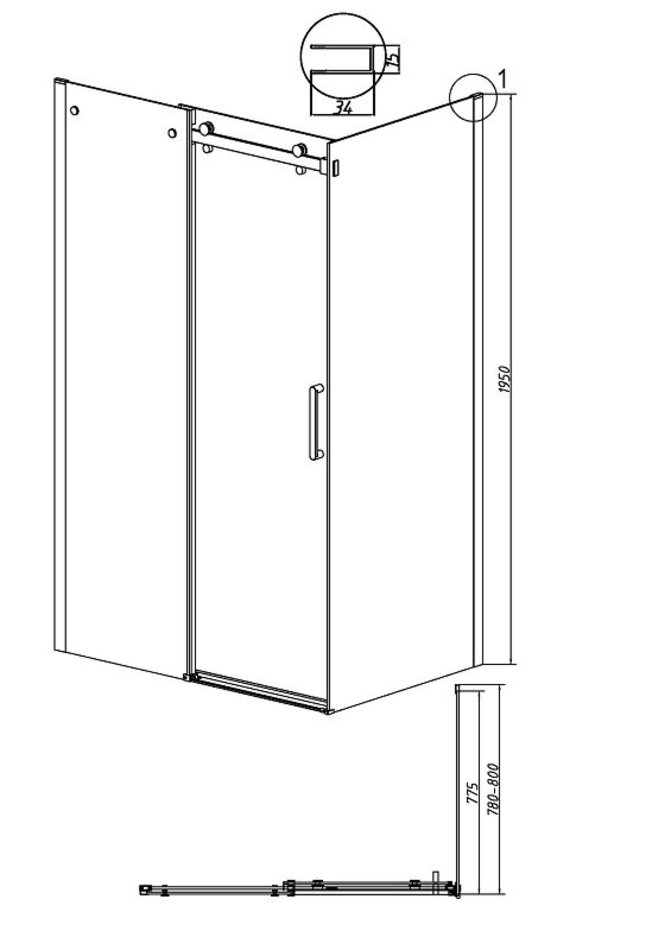 Душевая стенка Grossman Classic, 200.K33.04.80.10.00, 80 см, стекло прозрачное, профиль хром