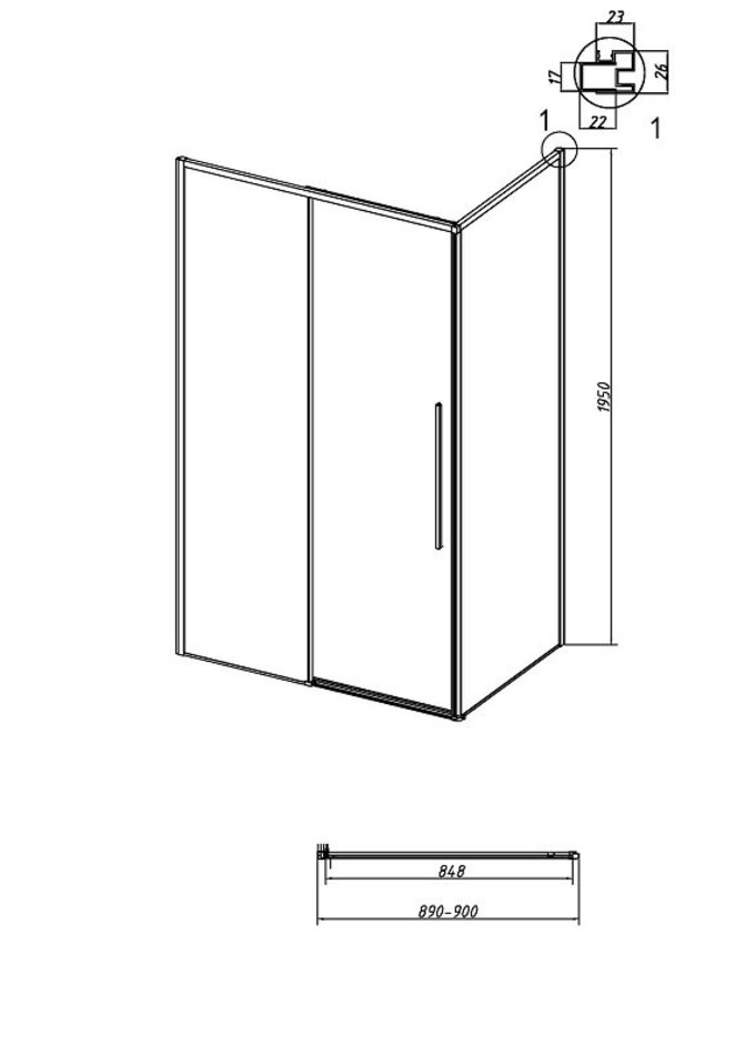 Душевая стенка Grossman Galaxy, 200.K33.01.90.42.00, 90 см, стекло прозрачное, профиль графит сатин