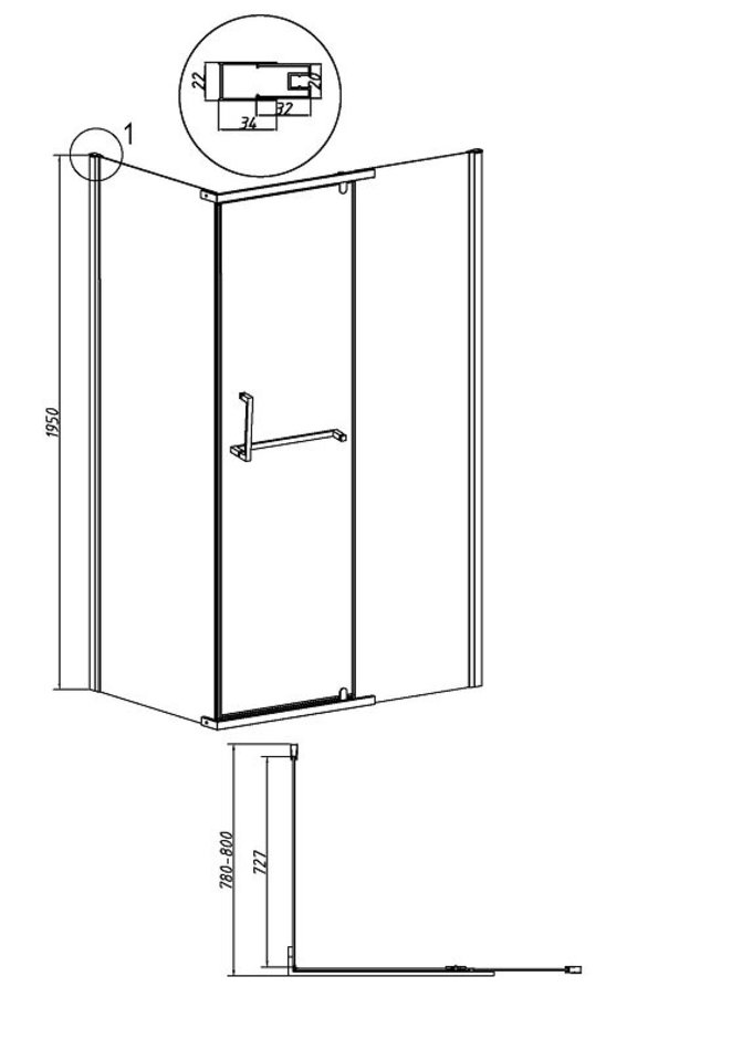 Душевая стенка Grossman Pragma, 200.K33.03.80.42.00, 80 см, стекло прозрачное, профиль графит сатин