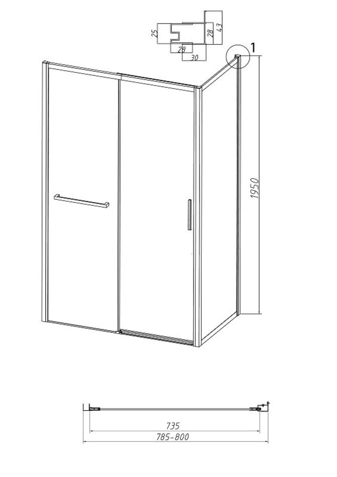 Душевая стенка Grossman Style, 200.K33.05.80.21.00, 80 см, стекло прозрачное, профиль черный матовый