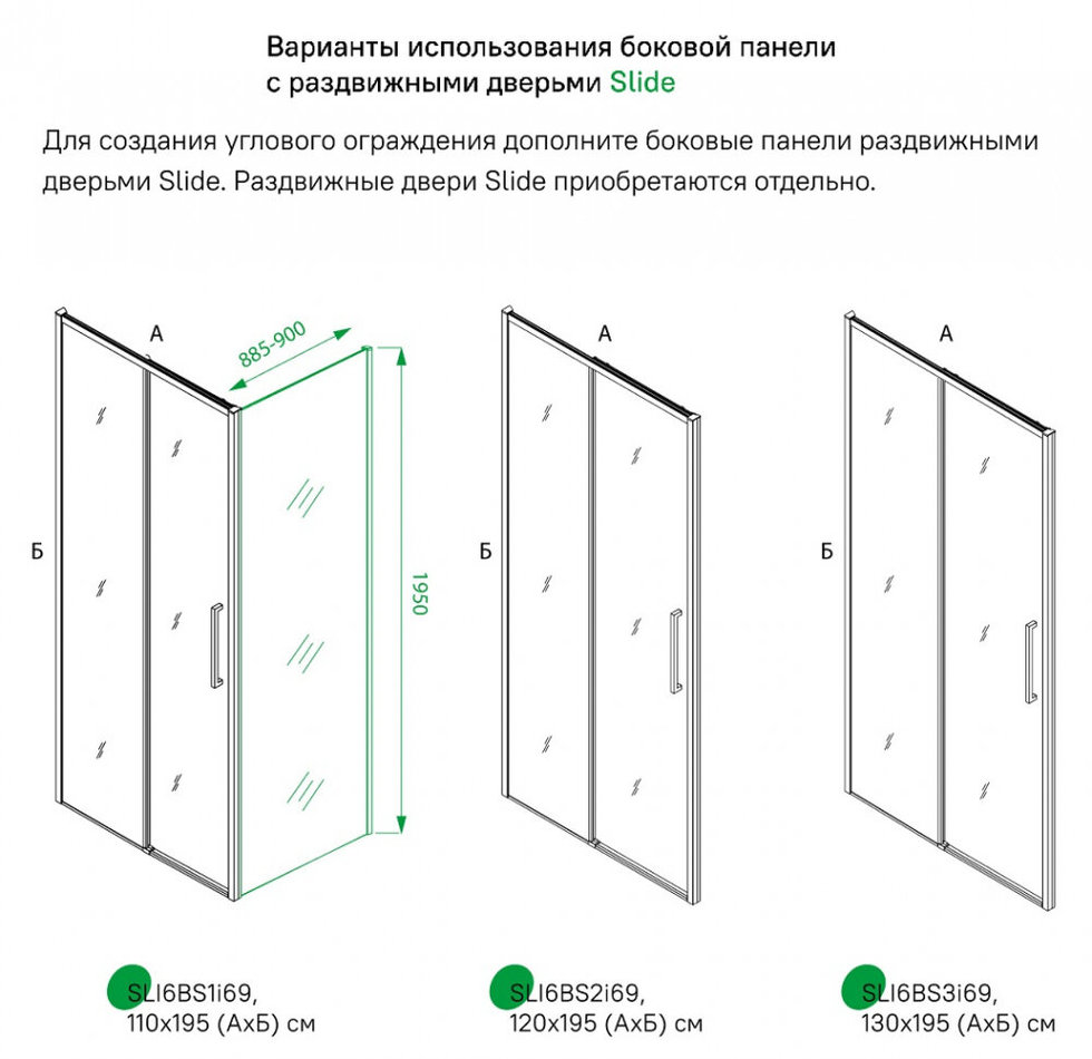Душевая стенка Iddis Slide 90 см, стекло прозрачное, профиль черный матовый, SLI6BS9i23