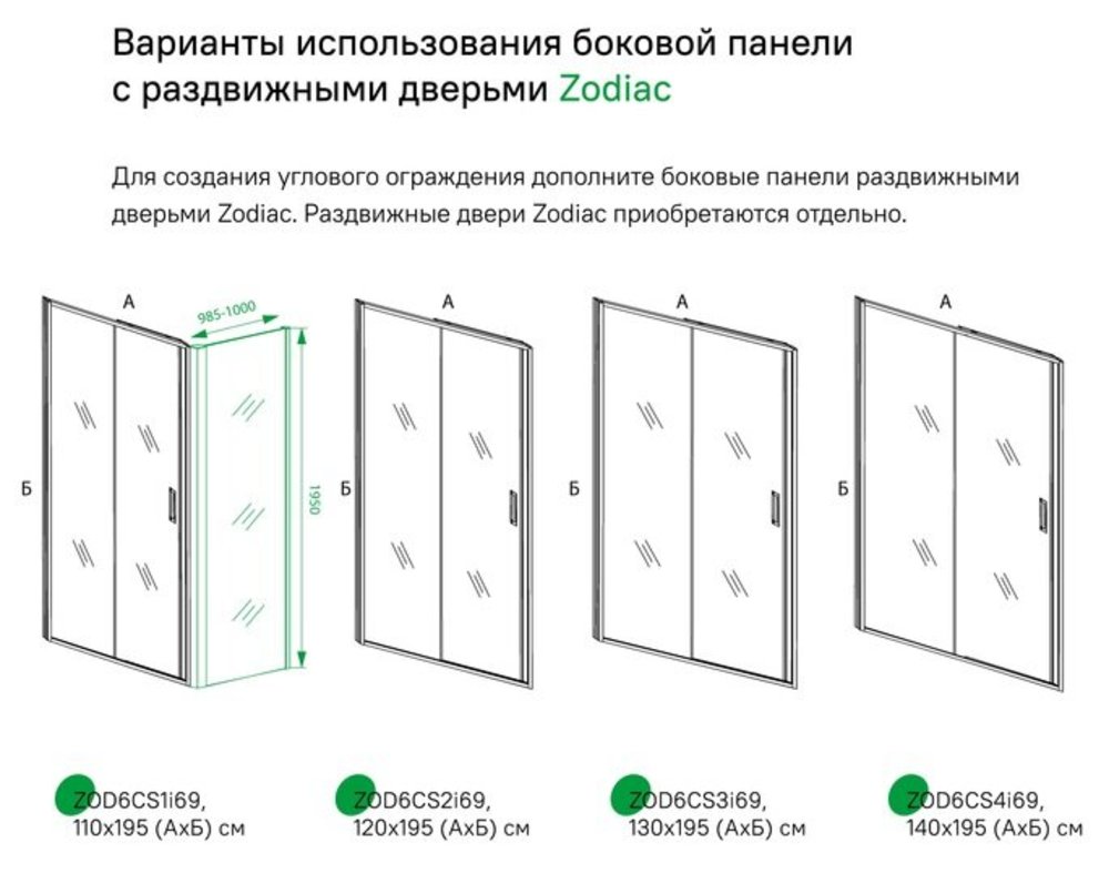 Боковая панель Zodiac подойдет для зонирования пространства ванной комнаты любого стиля и габаритов: от небольшого санузла в квартире-студии до просторной классической ванной. К панели можно добавить раздвижные двери Zodiac: арт. ZOD6CS1i69 (110 см), арт. ZOD6CS2i69 (120 см), арт. арт. ZOD6CS3i69 (130 см), ZOD6CS4i69 (140 см) и получить угловое ограждение. Раздвижные двери Zodiac приобретаются отдельно.