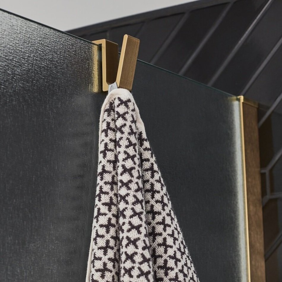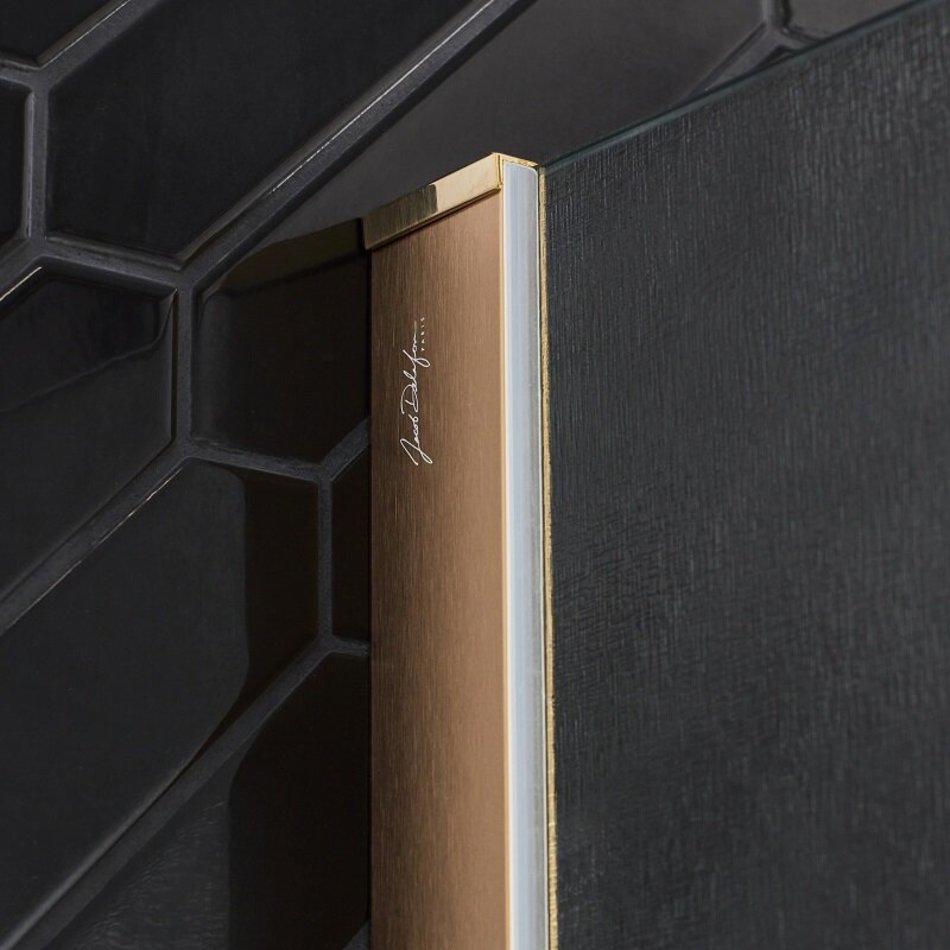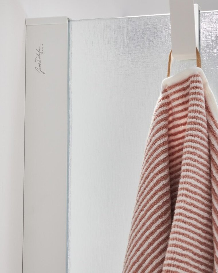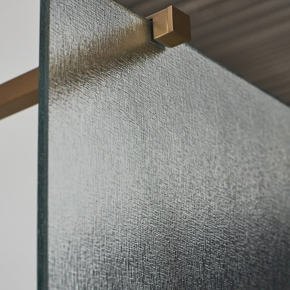 Неподвижная стенка 100 см – стекло с текстильным тиснением. Профиль приобретается отдельно. Доступен в хромированном, матовом черном цвете, матовой латуни и матовом белом цвете.