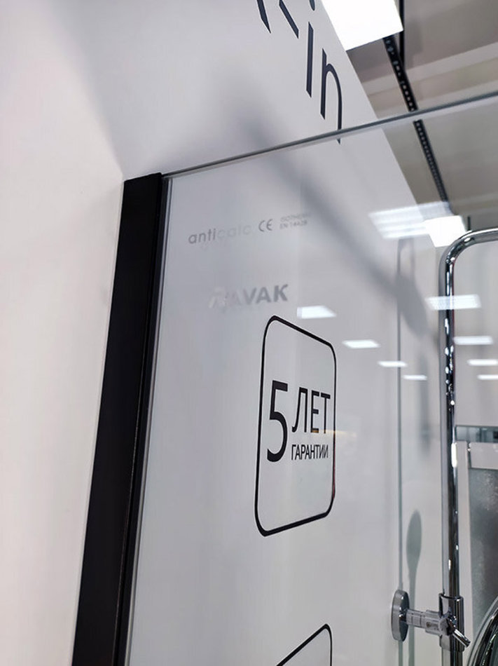 - витраж из безопасного стекла: 8 мм; Transparent с защитой стекла RAVAK AntiCalc®