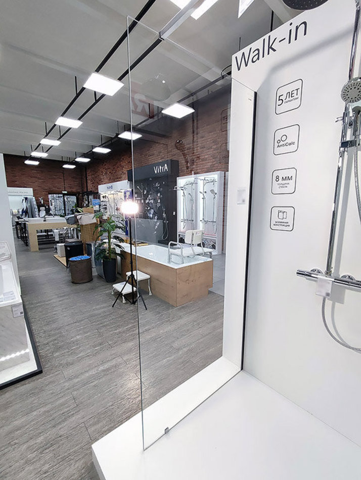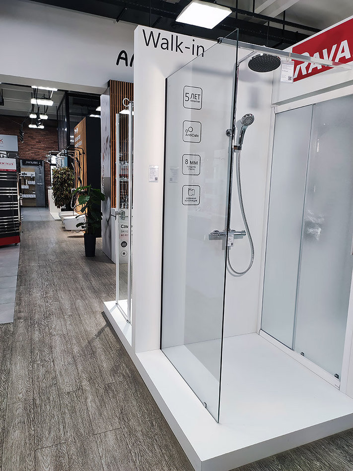 - ширина стеклянной неподвижной стенки Walk-in Wall: 90 см