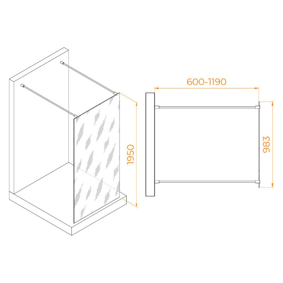 Душевая стенка RGW WA-016B Walk In 35101610-14, 100 см, стекло прозрачное, профиль черный матовый