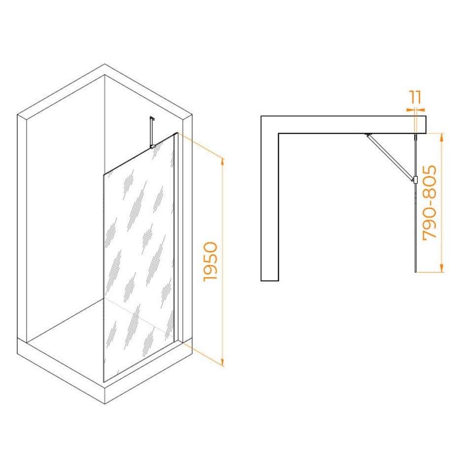 Душевая стенка RGW WA-102Gb Walk In 351010208-16, 80 см, стекло прозрачное, профиль золото брашированное