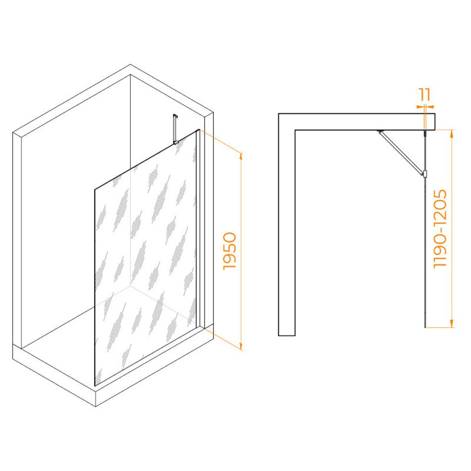 Душевая стенка RGW WA-102Gb Walk In 351010212-16, 120 см, стекло прозрачное, профиль золото брашированное