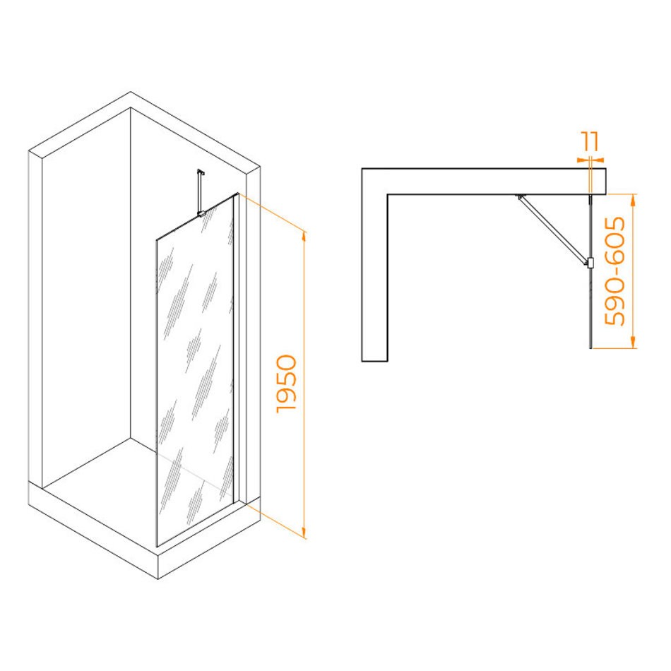 Душевая стенка RGW WA-102W Walk In 351010206-15, 60 см, стекло прозрачное, профиль белый