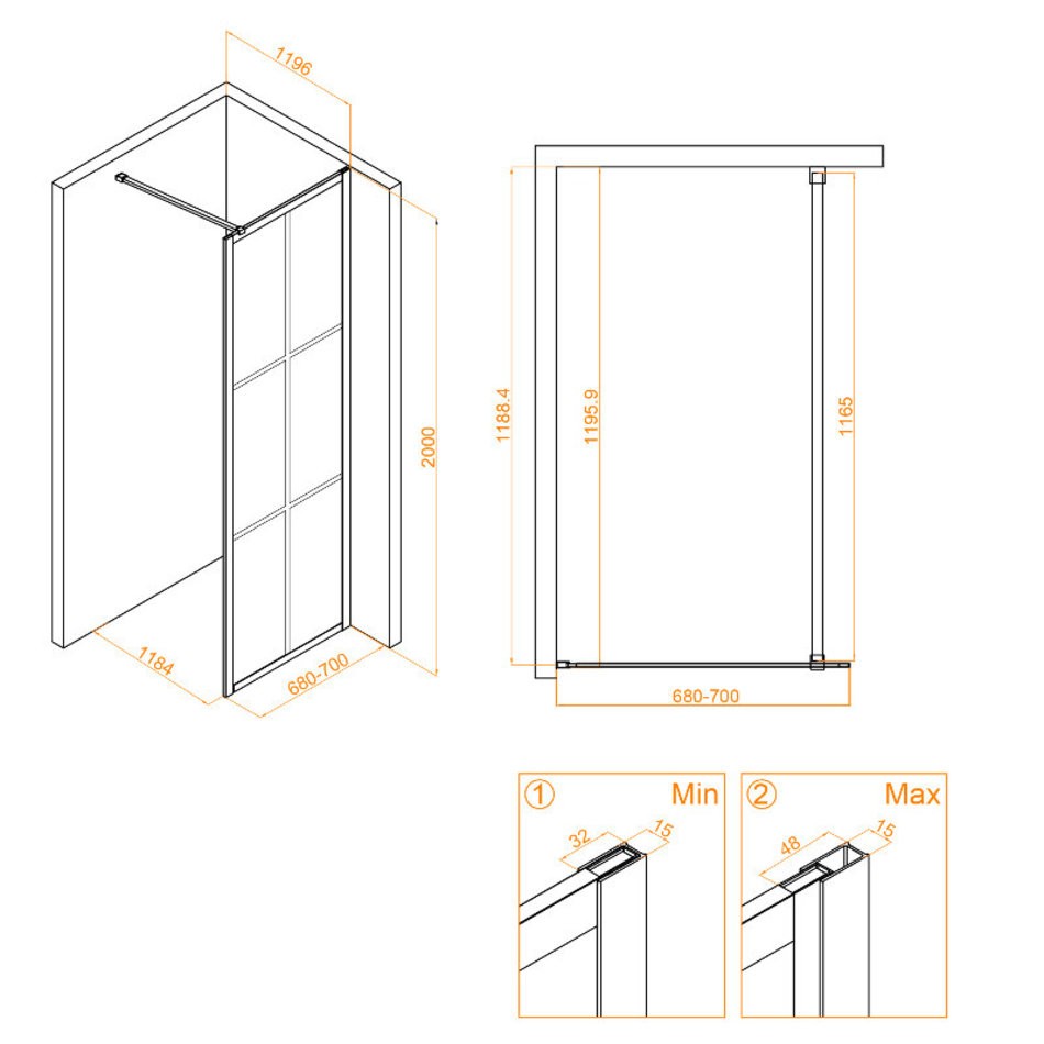 Душевая стенка RGW WA-110Gb Walk In 351011007-16, 70 см, стекло прозрачное, профиль золото брашированное