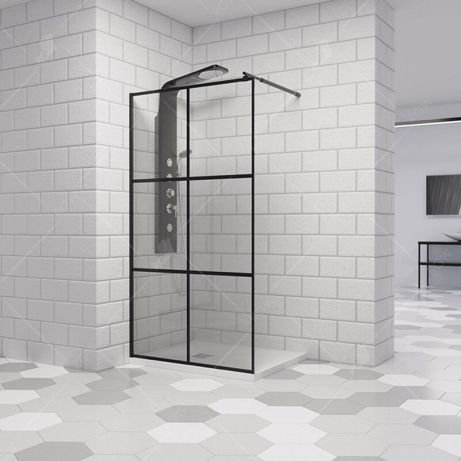 Душевая перегородка неподвижная. Черная печать шелкографии. Трап или поддон приобретается отдельно.
