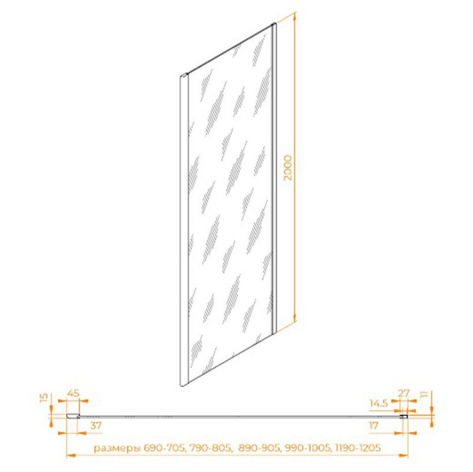 Душевая стенка RGW Z-050-1 352205112-11, 120 х 185 см, стекло прозрачное, профиль хром