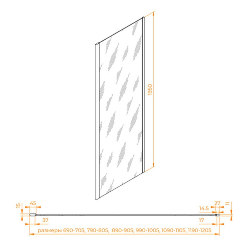 Душевая стенка RGW Z-050-2-B 352205200-24, 100 см, стекло матовое сатинат, профиль черный