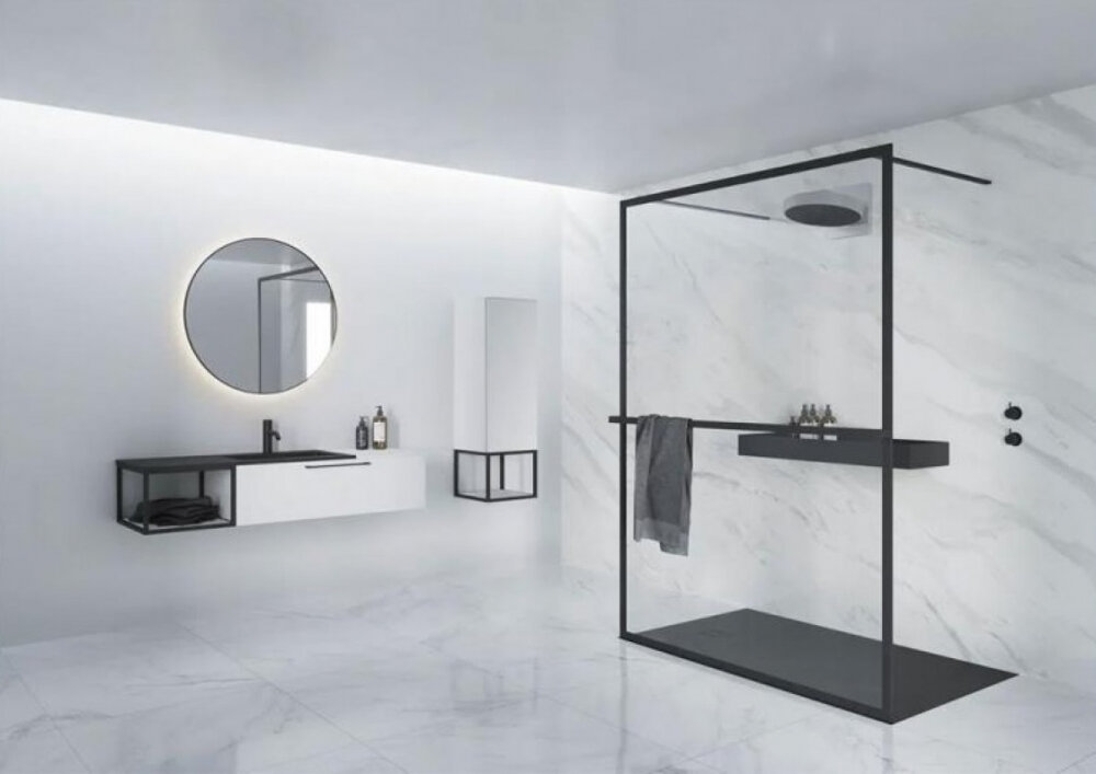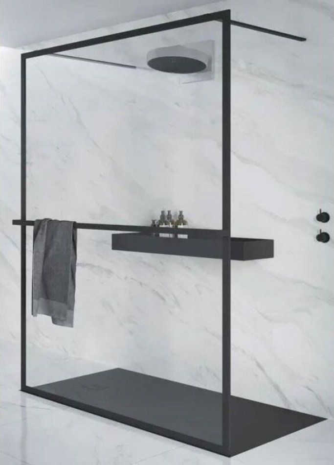 Душевая стенка Riho Lucid GD401 G005029121 90 см, свободный вход, стекло прозрачное, профиль черный матовый, с полотенцедержателем