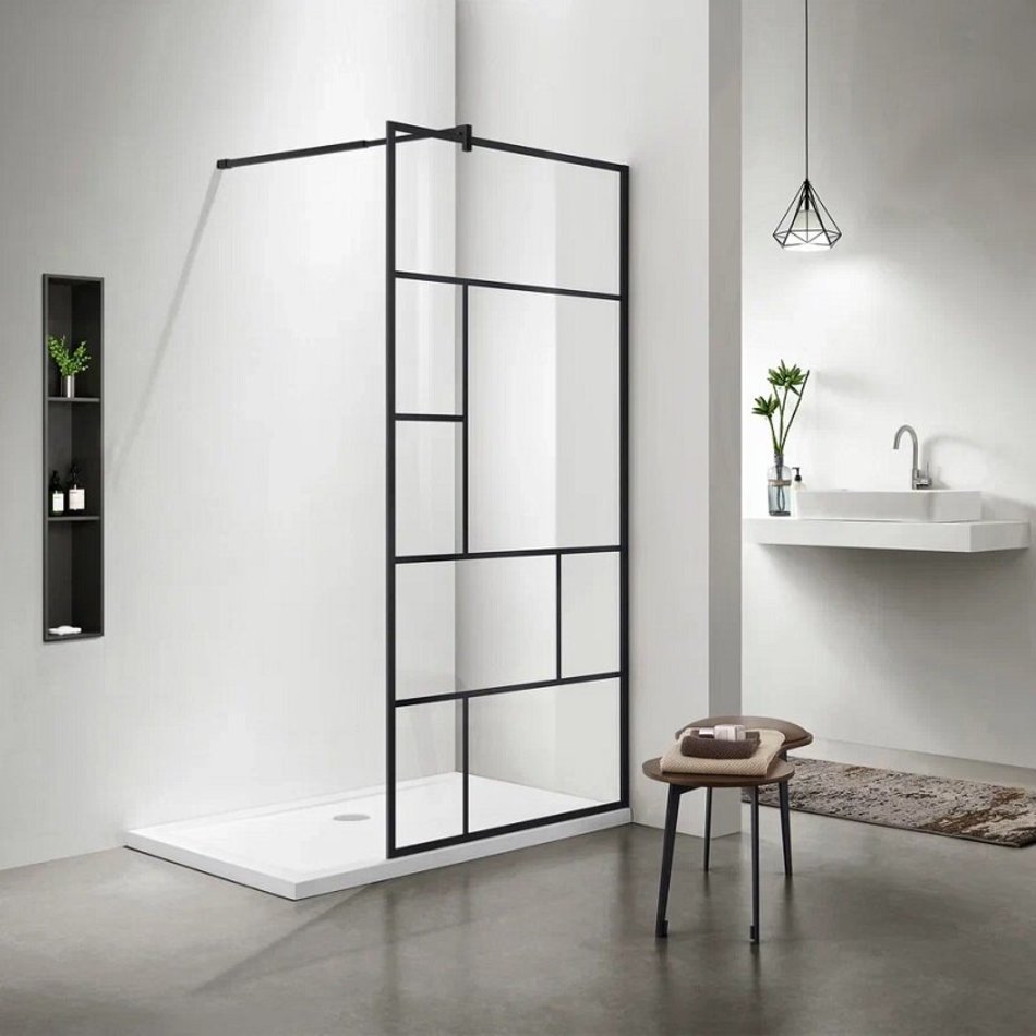 Душевая стенка со свободным входом Aquatek, 100 см, стекло прозрачное, профиль черный, AQ WIW Print 10020BL