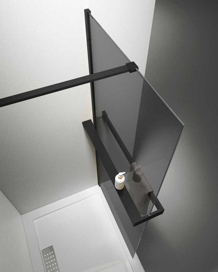 Душевая стенка со свободным входом Vincea Walk In 90 см, стекло тонированное, профиль черный, VSW-4HR900CGB
