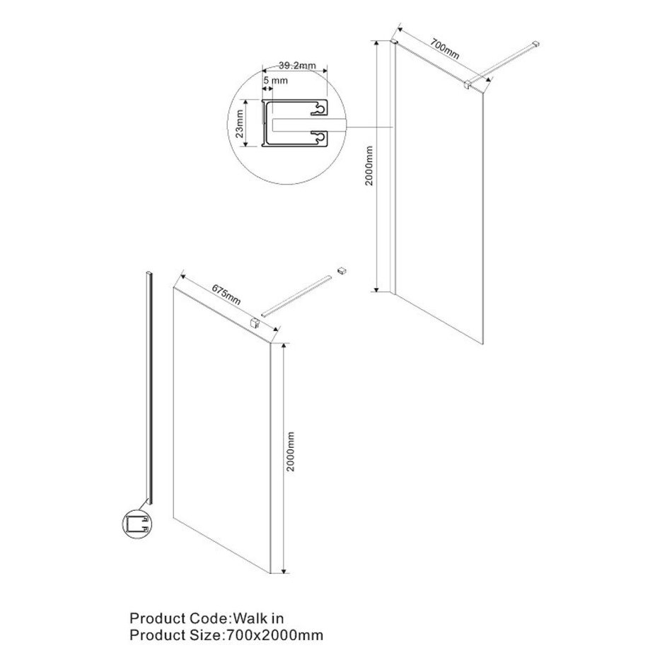 Душевая стенка Vincea Walk-In 70 см со свободным входом, стекло прозрачное, профиль воронёная сталь, gunmetal, VSW-1H700CLGM