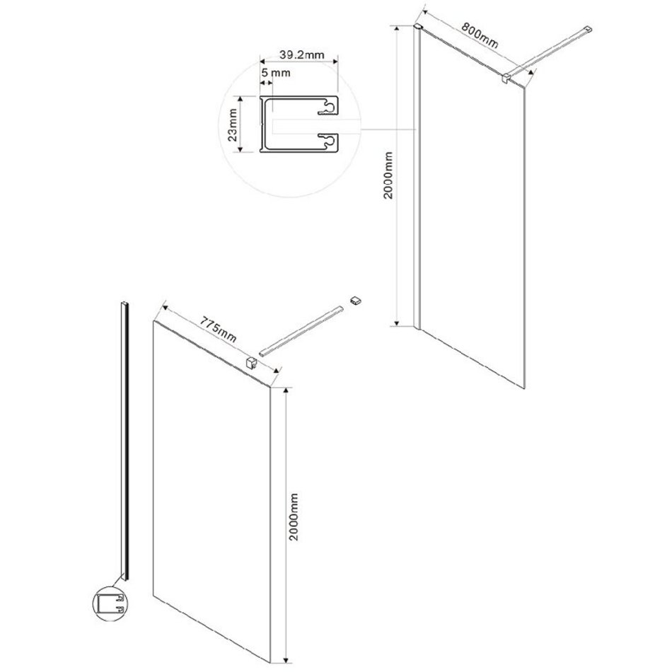 Душевая стенка Vincea Walk In 80 см, стекло прозрачное, профиль чёрный матовый, VSW-1H800CLB