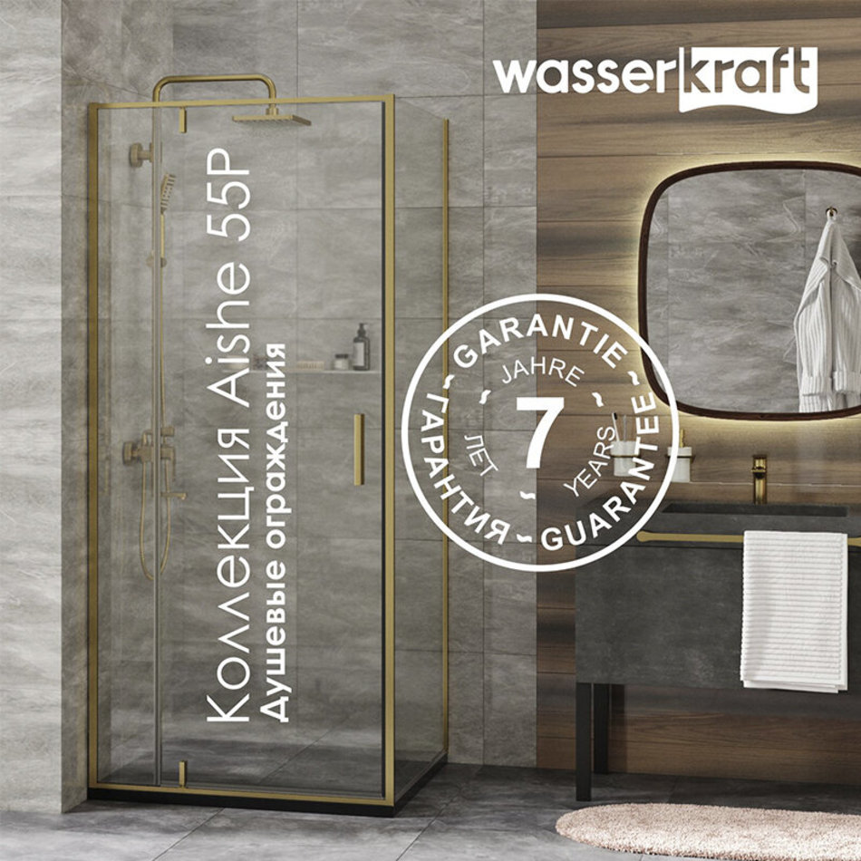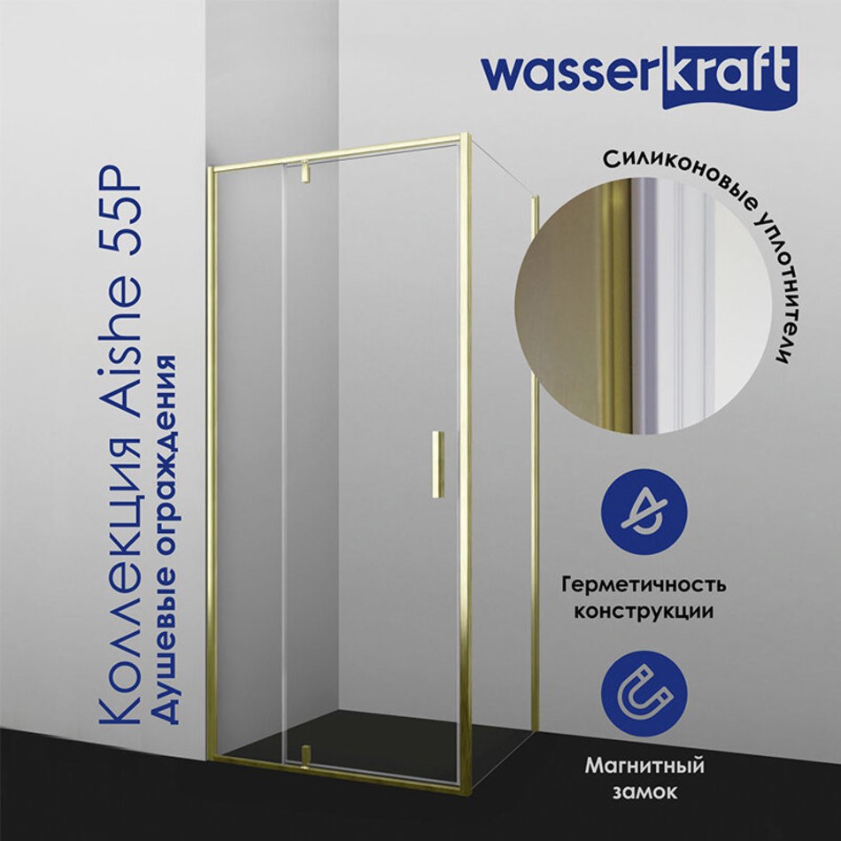 Душевая стенка WasserKRAFT Aisch 55P, 80 см, со свободным входом, стекло прозрачное, профиль золото матовое, 55P06-RP80