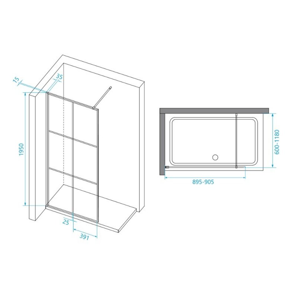 Душевой уголок со свободным входом, RGW WA-11-B, 90 см, стекло прозрачное черный принт, фурнитура черная, 411011109-84
