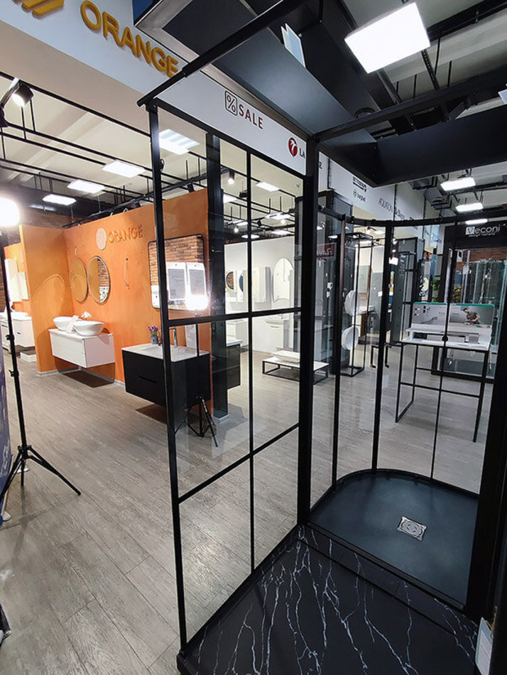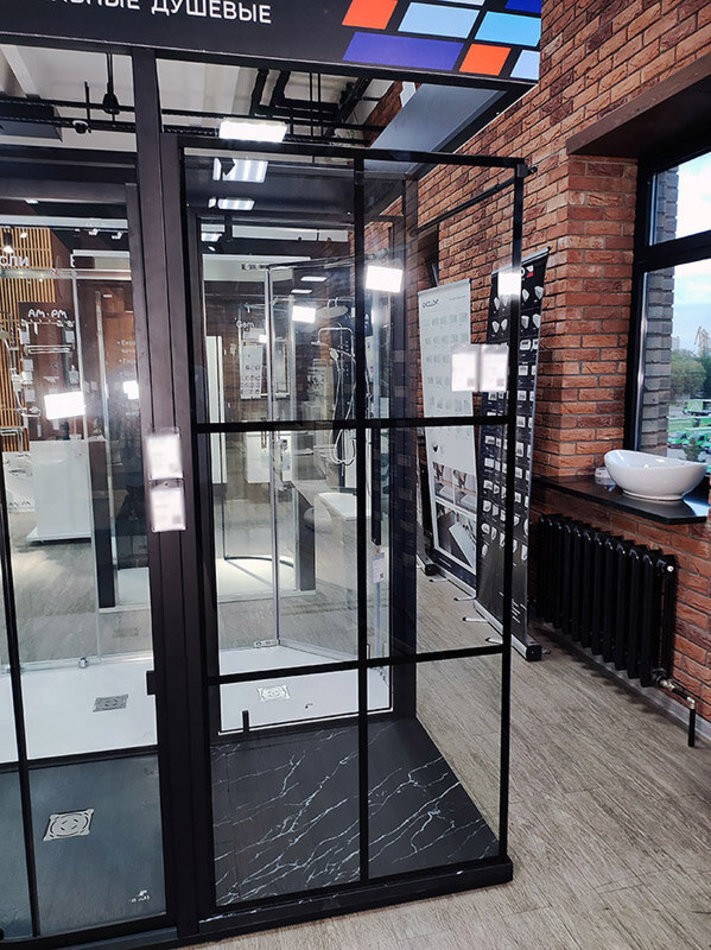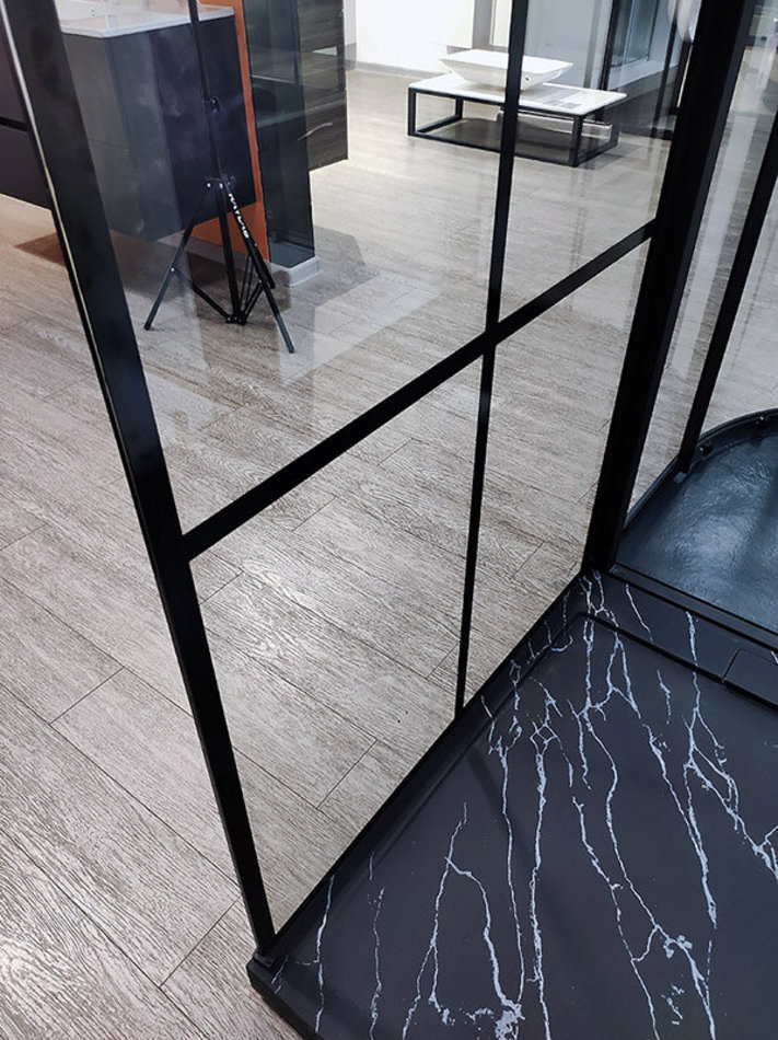 Душевая перегородка неподвижная. Черная печать шелкографии.