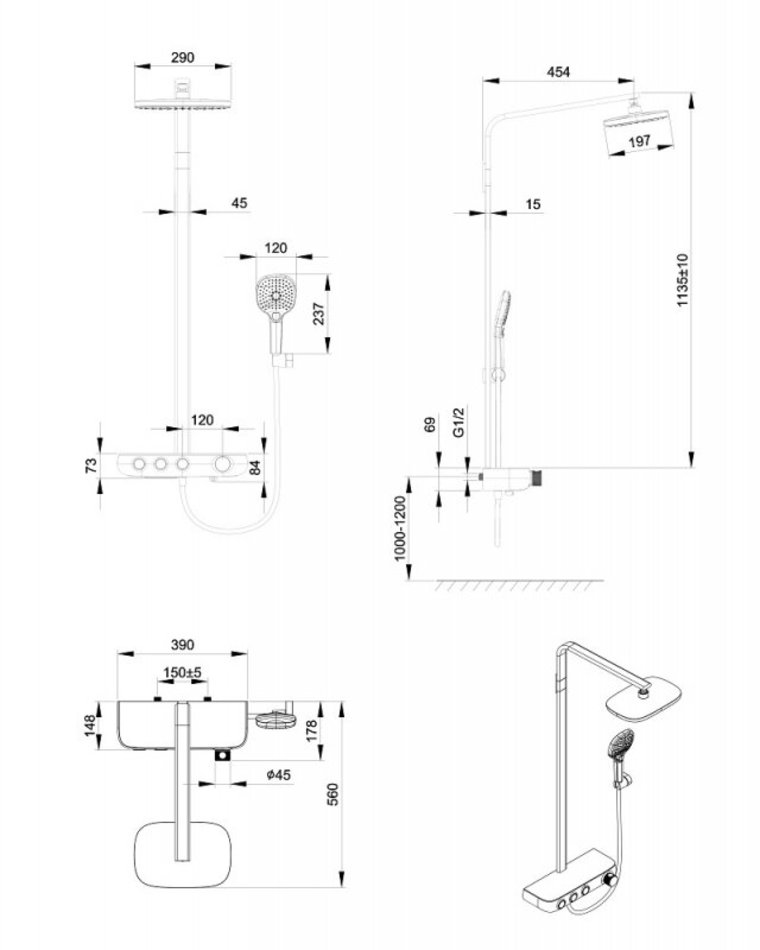 Душевая колонна Bravat Cobble F6389423CP-A1-ENG с термостатическим смесителем для ванны и душа, хром