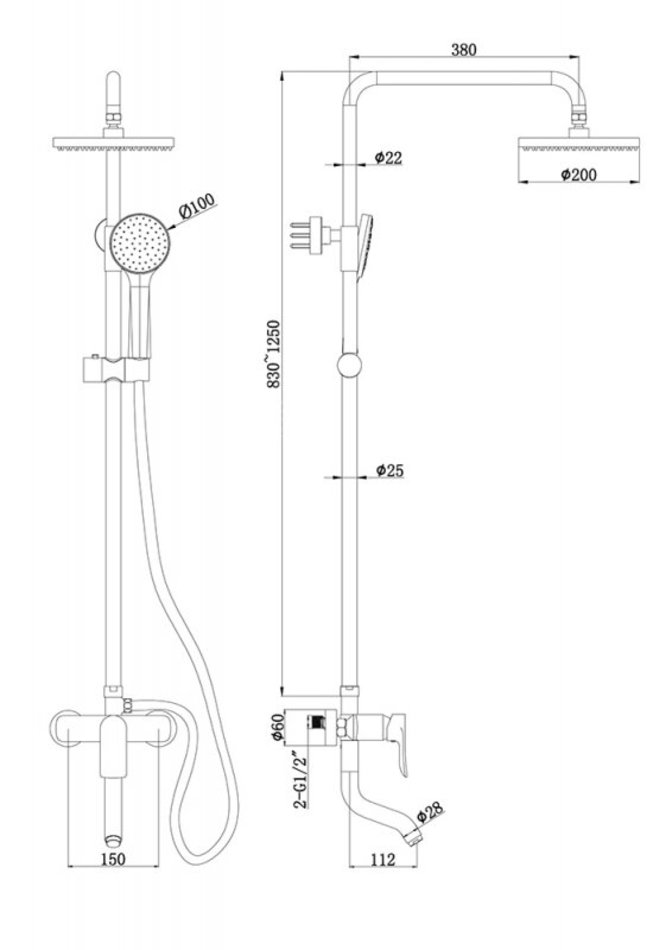 - Верхний душ: D20 см, круглый