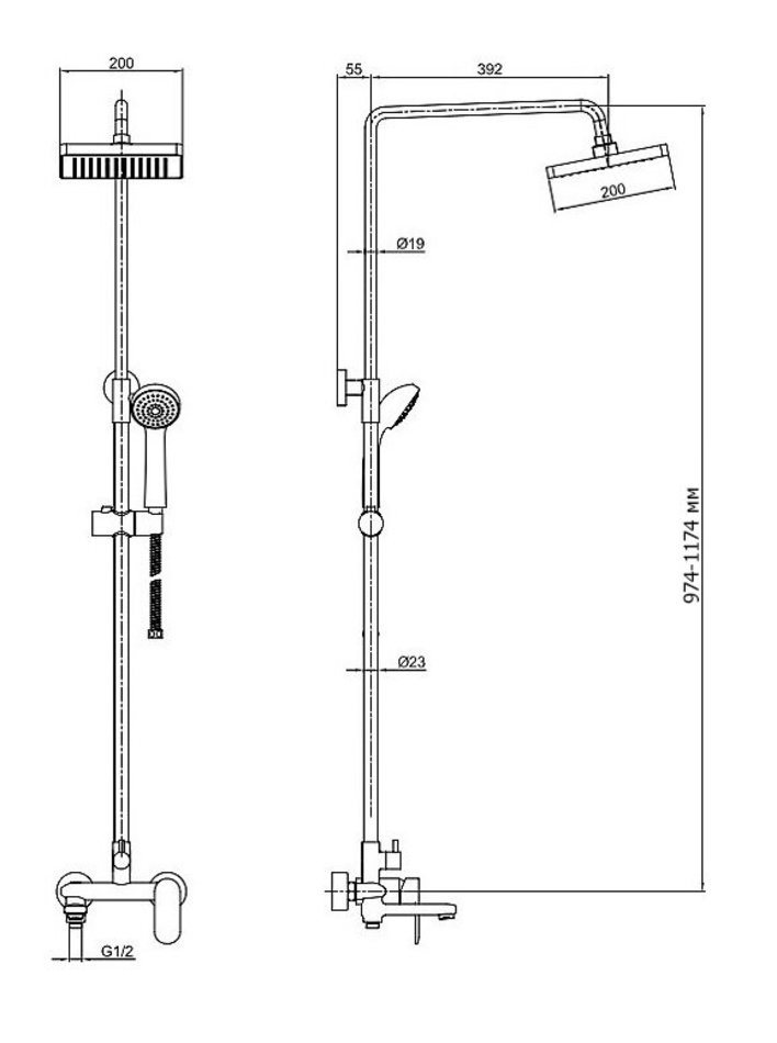 Душевая колонна Bravat Opal F6125183CP-A-RUS со смесителем для ванны, верхний душ квадратный, хром