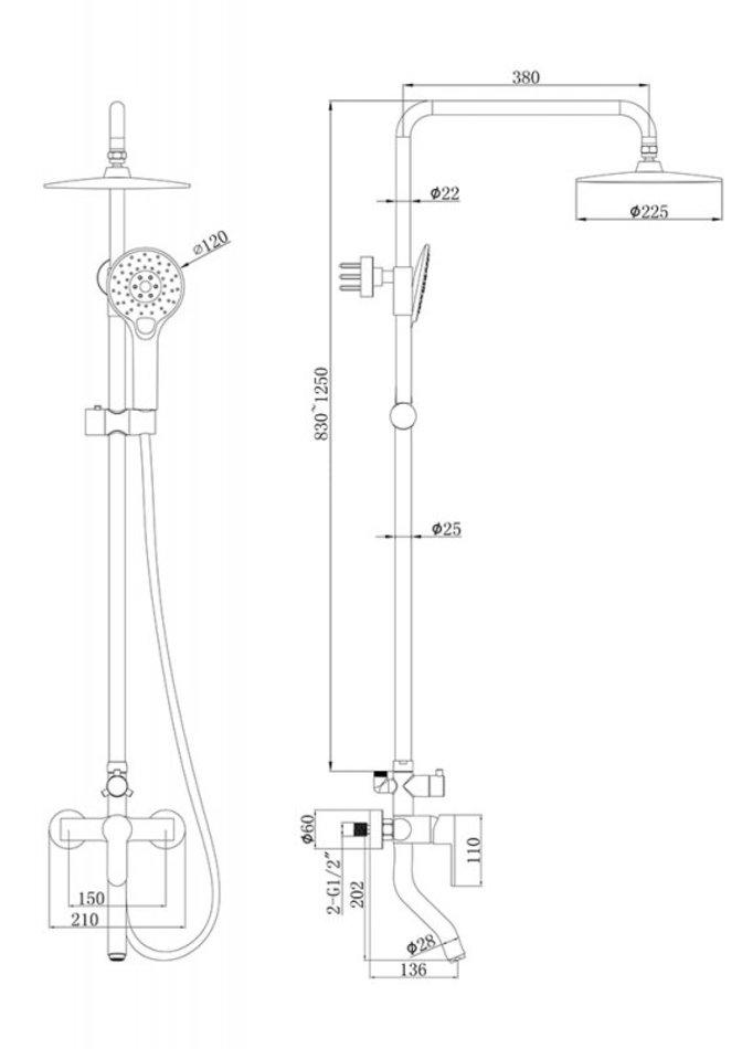 Душевая колонна Bravat Stream F6334368CP-A-RUS со смесителем для ванны и душа, хром