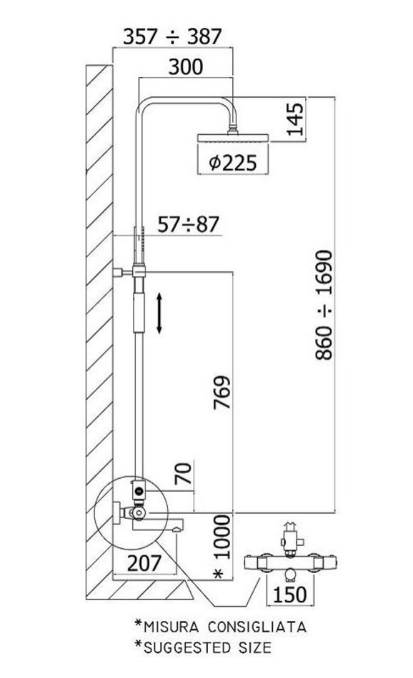 Душевая колонна Paffoni Birillo ZCOL721LIQCR с термостатическим смесителем для душа, с изливом