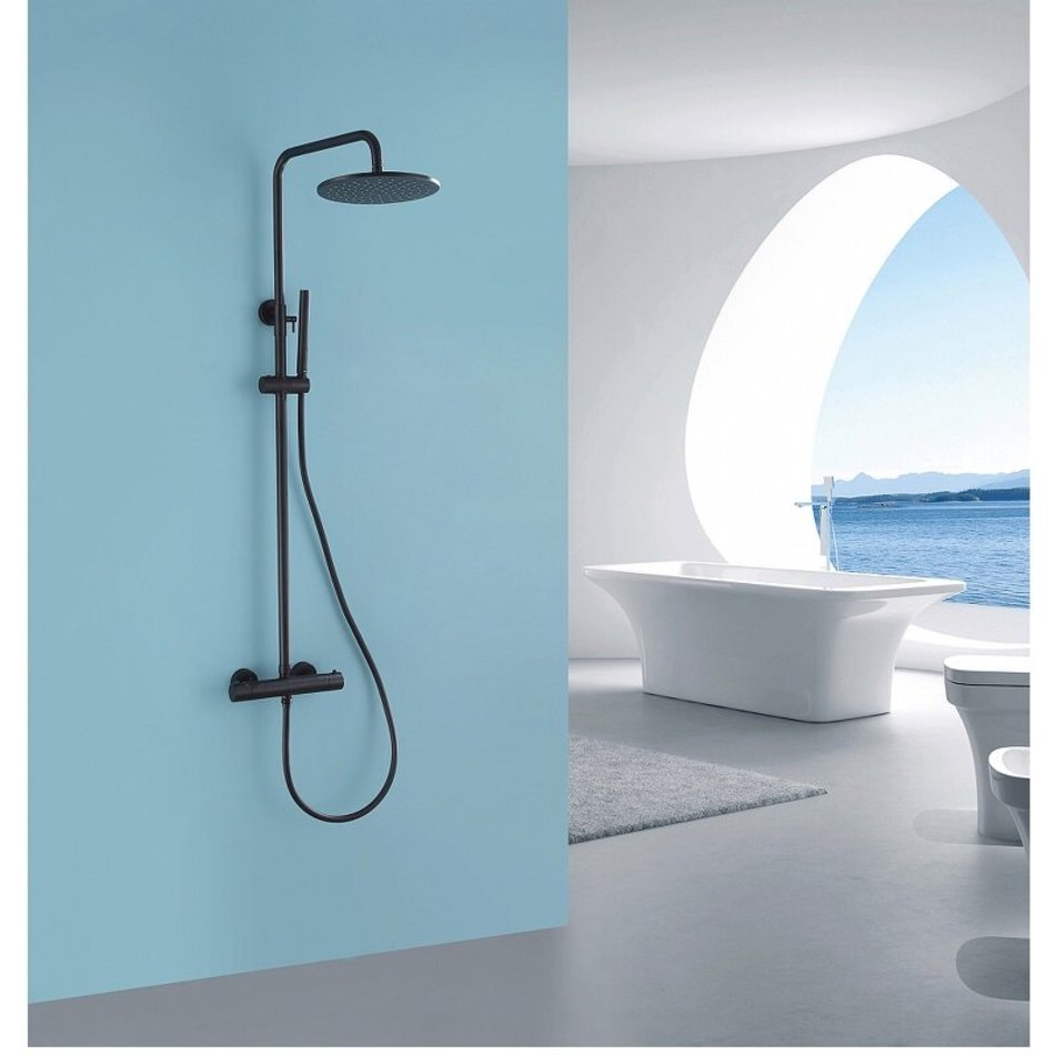 Душевая система Abber Wasser Kreis AF8160B, термостатическая, на 2 потребителя, цвет черный матовый