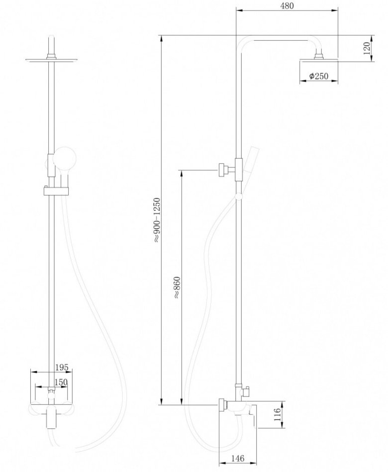 Душевая система Abber Weiss Insel AF8020, стойка, без излива, верхний душ, душевая лейка, хром