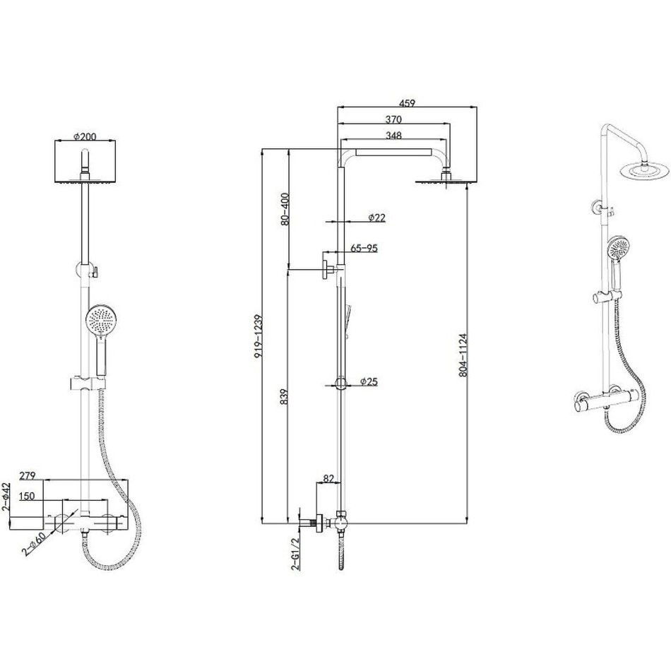 - Диаметр верхнего душа: 200 мм.