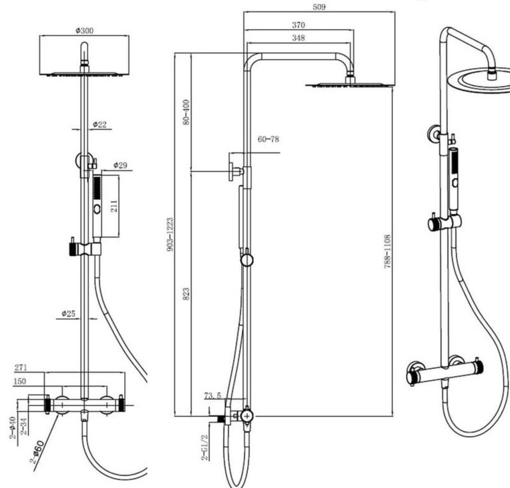 - Шланг для душа: 1,5 м шланг для душа SUS304 (внутренняя часть из EPDM, защита от перекручивания, латунная гайка) -